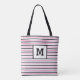 Cute Pink Stripes Custom Single Initial Black Tote