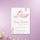 Cute Pink Swan with Crown Girl Baby Shower Invitation