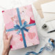 Cute Pink Teddy Bear Balloon Hearts Valentines Day Wrapping Paper