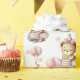 Make birthday gifts extra special with this adorable pink wrapping paper featuring cute teddy bear in a frock and birthday cap, blowing out her cake. Surrounded by balloons, gifts and stars, this charming design is perfect for kids’ birthdays, especially little girls. A fun, playful, and heart-warming wrap that adds instant joy to any birthday celebration.