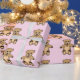 Cute Pink Teddy Bear Girl Pattern Wrapping Paper. Cute brown teddy bears, the background is pink.