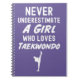 Celebrate the strength and passion of a young martial artist with this adorable pink notebook, featuring the powerful quote: **"Never Underestimate A Girl Who Loves Taekwondo."** This **unique** and **themed** design is the perfect gift to empower the **TKD** student, future **fighter**, or martial arts **lover** in your life. It’s a heartfelt and **related** present that captures the true spirit of a dedicated young athlete.