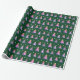 Green Christmas wrapping paper, adorned with a repeating pattern of minimalist pink trees and delicate stars.