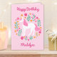 Cute Pink Unicorn Flowers Personalised Birthday Card