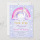 Girl's fourth birthday unicorn themed invitation featuring a unicorn, rainbow, clouds and stars. This four ever magical unicorn 4th birthday invitation is ideal for a girl's fourth birthday unicorn themed birthday party and also features a faux gold glitter word.