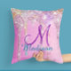 Cute Pink Unicorn Rainbow Glitter Drips monogram Cushion