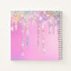 Make back to school fun with this Cute personalised Notebook. It is designed with elegant girly iridescent glitter drips in unicorn rainbow pink colours design on both sides.