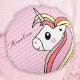 Cute Pink Unicorn Stripe Pattern Girl Name Round Cushion
