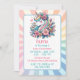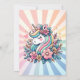 Sweet pink and teal magical unicorn, flowers and hearts little girl's personalised birthday party invitations. A pretty unicorn surrounded by flowers and hearts. Cute for any little girl who loves unicorns and flowers!