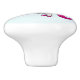 A ceramic door knob with a white winged unicorn with pink mane, tail and hooves.