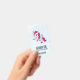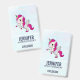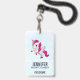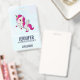 Name badge with a white winged unicorn with pink mane, tail and hooves.