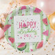 Summer hot pink watercolor watermelon themed Birthday napkin.