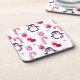 Cute Pink & White Christmas Pattern with Penguins Coaster