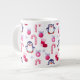 Cute Pink & White Christmas Pattern with Penguins Large Coffee Mug