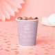 This cute pink baby shower paper cup features an adorable rocking horse toy above your modern minimalist white typography. Beautiful modern shower decor for a mum expecting a baby girl.