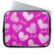 Cute Pink White Scribbled Hearts with Love Script Laptop Sleeve