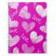 Cute Pink White Scribbled Hearts with Love Script Notebook