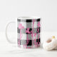 Cute pink wildflowers doodle black white plaid coffee mug