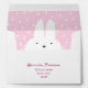 Adorable winter return address envelope featuring a peek-a-boo white bunny on a pink snowy background. This envelope is perfect for baby’s first birthday, Winter ONEderland invitations, or any winter-themed party.