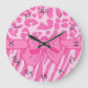 Cute Pink Zebra Leopard Animal Print and Girly Bow Large Clock