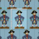 A lad dressed as a pirate wears a long coat and a black pirate hat adorned with skull and crossbones in this original work by Richard H. Fay.