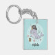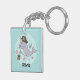 This personalised keychain features a charming and playful cartoon narwhal with a whimsical expression, wearing a tiny pirate hat adorned with a skull and crossbones. Fun ocean-themed accessories like a treasure chest, starfish, and floating bubbles surround the narwhal.