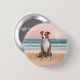 Cute Pitbull Dog Sitting on Beach with sunset 6 Cm Round Badge