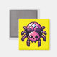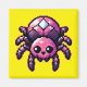 This image showcases a pixel art depiction of a spider, rendered in a charming, retro 8-bit style. The spider’s body is predominantly pink, accented with darker shades and light blue highlights, creating a striking contrast against its black outline. This pixelated arachnid exudes a playful yet edgy vibe, reminiscent of classic video game aesthetics. The charm-like design suggests symbolism related to luck and protection, while the colours pink and black add layers of mystery and complexity. The pixel art style not only evokes nostalgia but also highlights the intricate artistry involved in digital creations.