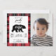 Fun and wild, throw an adventurous 1st birthday party for your little cub with these adorable Cute Plaid Flannel Pattern Baby Photo 1st Birthday Invitations. Features red, black, and white striped gingham flannel plaid pattern with a black bear and typography. All text is customisable to fit your party going needs. Change the photo of the baby feature to your little boy to complete.
