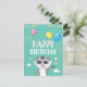 Cute playful and funny racoon with bunting and balloons on birthday cards and luggage tag. Great for children and anyone who wants to add a sweet playful tone to their greeting cards.