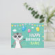 Cute playful and funny racoon with bunting and balloons on birthday cards and luggage tag. Great for children and anyone who wants to add a sweet playful tone to their greeting cards.