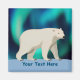 A cute polar bear (Ursus maritimus), done in a simple primitive, or naive style, walks on the polar ice, the Aurora Borealis (Northern Lights) glow brightly in the background. Customise by adding your own text.
