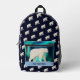 A cute polar bear (Ursus maritimus), done in a simple primitive, or naive style, walks on the polar ice, the Aurora Borealis (Northern Lights) glow brightly in the background. Customise by adding your own text.