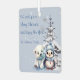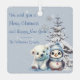 This custom holiday ornament features a cute North Pole Christmas theme. A cute baby penguin and polar bear cub are standing near a snow covered pine tree, beneath falling snowflakes. A Christmas greeting is printed on the left in an elegant script font, followed by a sample family name. You can personalise the ornament to include your own custom name or text.