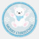 Cute Polar Bear and Snowflakes Blue Christmas Classic Round Sticker