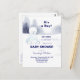 Invite your guests to a winter baby shower with this cute polar bear, winter wonderland theme. Blue and white, snow covered, forest background with bear cub at left on snow covered hill. Templates provided, so you can easily make these for your party. #polarbear #winterbabyshower
