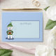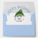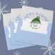 A whimsical blue Holiday envelope featuring a polar bear and some snowflake . Personalise it with your Holiday greeting , your name and address .