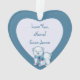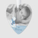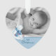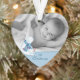 Your own photograph takes centre stage on this adorable "First Christmas" baby ornament, especially designed for a grandparent. The front has your own photograph, with a cute polar bear holding a candy cane at the bottom left. A blue banner at the bottom says "1st Christmas". The back of the ornament has a white heart image with a blue border, and your custom text in matching blue. Another little polar bear image is at the bottom. This makes a wonderful keepsake for a first time grandparent, or grandparents. All the text is easily customised, so make it say whatever you'd like!