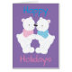 Cute Polar bear Happy Holidays, displays a purple background with a male and female polar bears wearing pink and blue scarves. The snowmen and snow woman are holding hands and "Happy Holidays" was written in blue and pink. Place your order today!