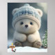 Cute Polar Bear in Snow Blue Hat Personalised Art Poster