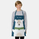 This cute apron features a simple, adorable white bear over a custom colour background (shown in blue). He's wearing a green scarf and is opening his arms, ready for a hug! A text template is included for personalisation, making this apron a unique gift! Perfect for holiday season baking with kids!