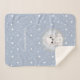 Cute Winter Baby Sherpa Blanket in blue with white stars and with a cute polar bear. Easily personalise the text.