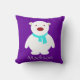 Cute Polar Bear on Purple & Aqua Pillow, Add Name Cushion