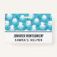 Name badge with a cute Christmas pattern featuring polar bears standing on floating ice wearing red santa hats. Little igloos, snowflakes and fish surround these adorable polar bears chilling on the water. Light blue background. Cute and whimsical holiday design.