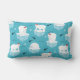 A lumbar pillow with a cute Christmas pattern featuring polar bears standing on floating ice wearing red santa hats. Little igloos, snowflakes and fish surround these adorable polar bears chilling on the water. Light blue background. Cute and whimsical holiday design.