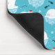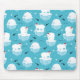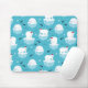 Mouse pad with a cute Christmas pattern featuring polar bears standing on floating ice wearing red santa hats. Little igloos, snowflakes and fish surround these adorable polar bears chilling on the water. Light blue background. Cute and whimsical holiday design.