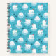 Spiral notebook with a cute Christmas pattern featuring polar bears standing on floating ice wearing red santa hats. Little igloos, snowflakes and fish surround these adorable polar bears chilling on the water. Light blue background. Cute and whimsical holiday design.