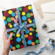 This is a cute, fun and 'happy' wrapping paper with a colourful polka dots pattern on black! It will make all your awesome gifts stand out under the Christmas tree!