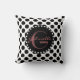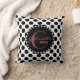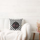 Cute Personalised Throw Pillow; Black & White Polka Dots, Customise with your name & initial on the Rose/Black Label