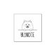 Simple cartoon illustration of a cute pomeranian peeking from behind a divider. Only its head and front paws are visible. Customisable name.